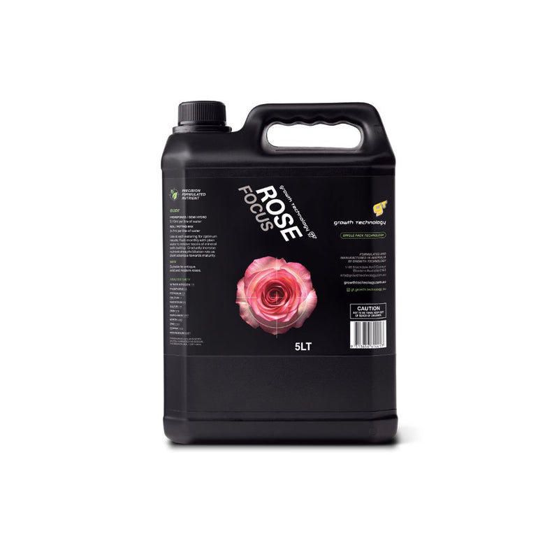 Growth Technology Rose Focus is a specialised nutrient supplement formulated to support the vigour, bloom size, colour intensity, and overall performance of rose plants. Roses have unique nutritional needs that differ from many other ornamental plants, and Rose Focus delivers a balanced blend of essential macro‑ and micronutrients designed to promote lush foliage, prolific flowering, and strong plant health throughout the growing season.